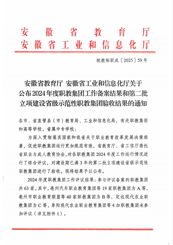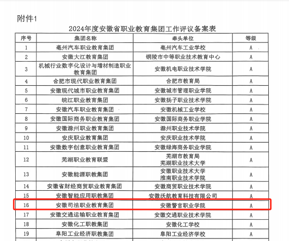 近日,安徽省教育廳、安徽省工業(yè)和信息化廳共同發(fā)文,學(xué)院牽頭成立的安徽司法職業(yè)教育集團(tuán)以規(guī)范高效的運(yùn)行管理與顯著的建設(shè)成效,在全省63家職教集團(tuán)2024年度工作運(yùn)行情況綜合評(píng)價(jià)中獲評(píng)A類職教集團(tuán)。這是集團(tuán)繼去年獲省級(jí)示范職業(yè)教育集團(tuán)后,又獲評(píng)A類職教集團(tuán),彰顯了在司法職業(yè)教育領(lǐng)域的標(biāo)桿地位。