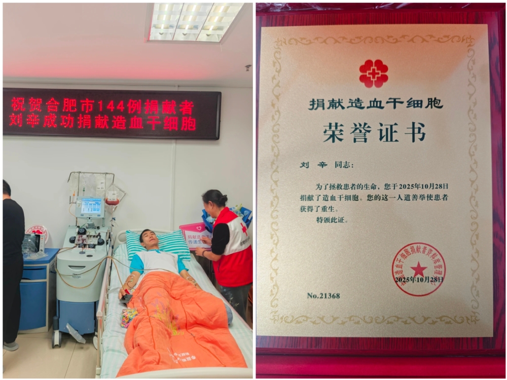 合肥市紅十字會三級主任科員陳圓圓表示,造血干細胞捐獻目前多采用外周血采集方式,捐獻過程科學、安全,不需要鉆骨抽髓,與成分獻血類似,對健康無長期影響。“我們也希望更多人能夠像劉辛同學一樣,正確認識造血干細胞捐獻,加入到中華骨髓庫志愿者大家庭,為每一個生命助力續航。”