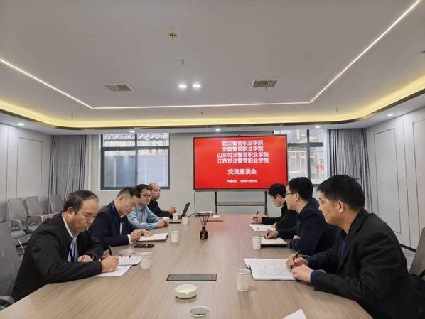 武漢警官職業學院黨委委員、副校長李祖義主持召開座談會。安徽警官職業學院、山東司法警官職業學院、江西司法警官職業學院校領導和相關工作人員參加座談會。李校長對學院率隊到訪調研交流表示熱烈歡迎,并簡要介紹了武漢警院歷史、新校區運行、“十五五”規劃編制等情況。他希望雙方以此次交流為契機,進一步加強兩校合作交流,共同助力司法職業教育事業邁上新臺階。