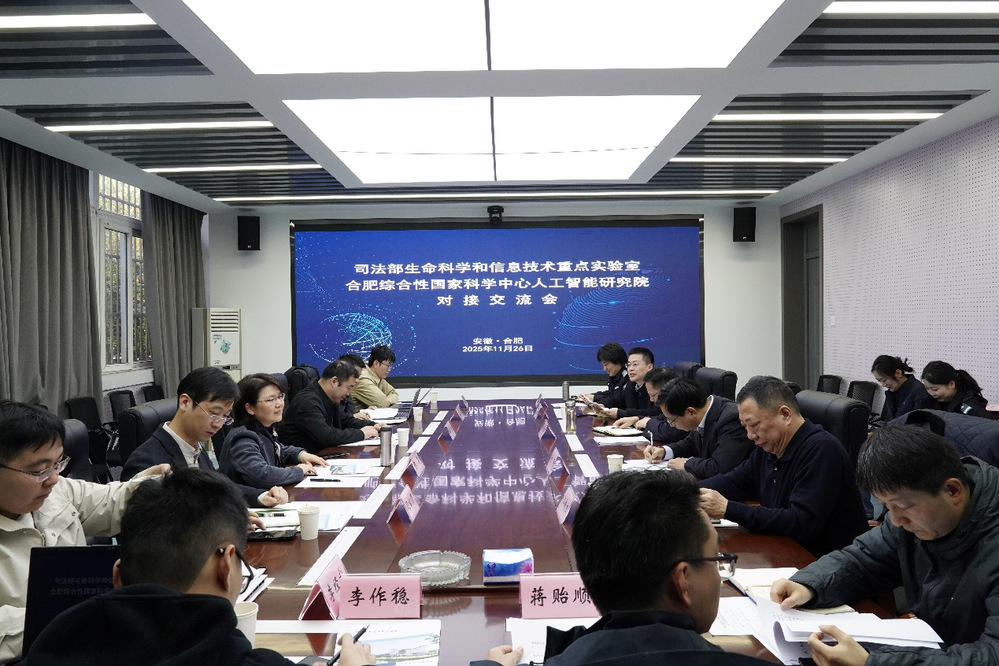 為深入學習貫徹黨的二十屆四中全會精神,推動生命科學與人工智能技術賦能司法行政,11月26日,司法部生命科學和信息技術重點實驗室與合肥綜合性國家科學中心人工智能研究院對接交流會召開。省司法廳科技信息處處長嚴坦主持會議,學院黨委副書記、院長操申斌,人工智能研究院副院長陳莉,省委政法委政法綜治事務中心副主任許平出席,省監獄局、戒毒局及雙方單位相關負責人、技術骨干參會。