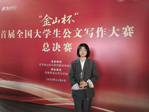 近日,“金山杯”首屆大學(xué)生公文寫作大賽全國總決賽在首都師范大學(xué)圓滿落幕。學(xué)院法律二系2024級社區(qū)管理與服務(wù)專業(yè)學(xué)生李燃憑借扎實的公文寫作功底、嚴(yán)謹(jǐn)?shù)倪壿嬎季S和清晰的現(xiàn)場陳述,在激烈的競爭中脫穎而出,榮獲全國總決賽銅獎,其撰寫的調(diào)研報告入選“大學(xué)生百篇優(yōu)秀調(diào)研報告”。