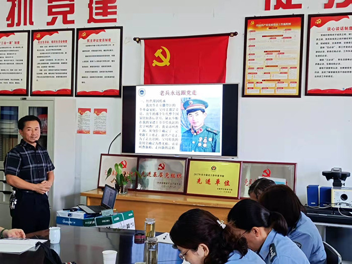 隨后,退伍老兵、學生科曹光裕老師結合家庭背景、個人成長等,為大家講授了以《老兵永遠跟黨走》為主題的黨課。他從紅色基因傳承、思想政治行動跟黨走、黨員從我做起等幾個方面,講述了一個退伍黨員如何把本職工作與習近平新時代中國特色社會主義思想聯系起來,如何不忘初心,全心全意為人民服務的事跡。