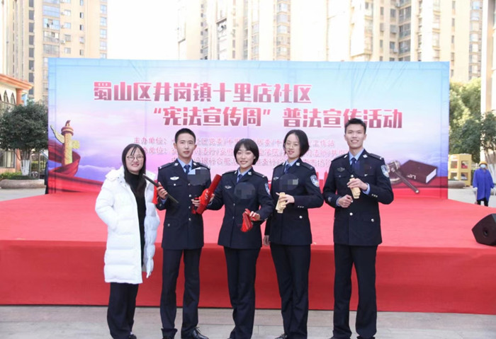 12月1日和3日,法律一系教師汪鈞和王蔚跟隨學院赴井崗鎮十里店社區和廬江縣中心城開展普法宣傳。普法現場,由我系“警·壹”班主任工作室編排的快板節目《中華民族好法典》形式新穎,以通俗易懂、有趣生動的方式演繹了民法典部分內容,讓現場居民耳目一新。居民反響熱烈,表示活動形式新穎、受益匪淺。