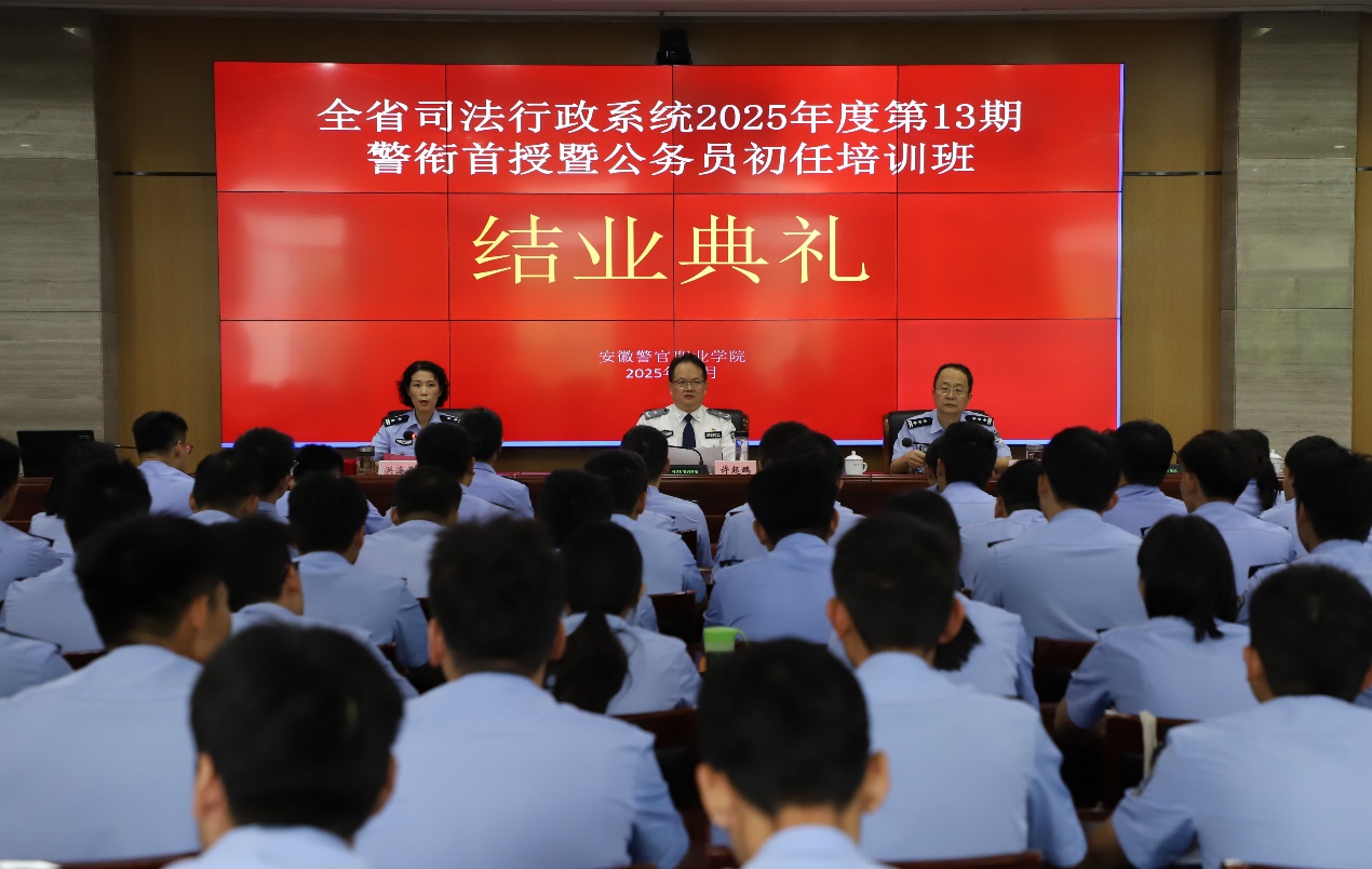 9月30日上午,全省司法行政系統2025年度第13期警銜首授暨公務員初任培訓班結業典禮在繼續教育學院多功能廳舉行。繼續教育學院院長作總結講話,警訓科全體人員參加典禮。