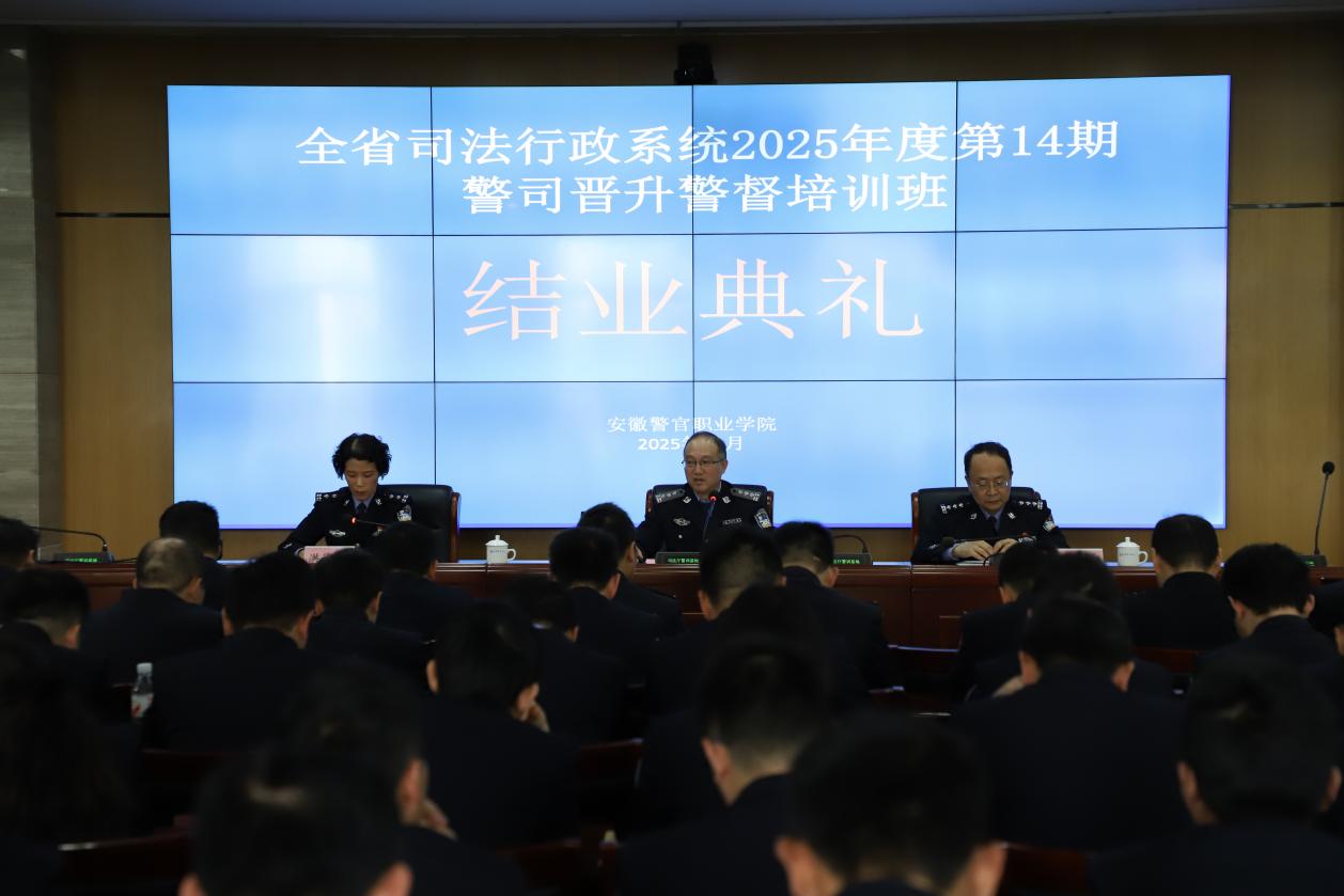 11月5日下午,全省司法行政系統(tǒng)2025年度第14期警司晉升警督培訓(xùn)班結(jié)業(yè)典禮在繼續(xù)教育學(xué)院多功能廳舉行。繼續(xù)教育學(xué)院副院長(zhǎng)張永紅作結(jié)業(yè)總結(jié)講話(huà),警訓(xùn)科全體人員參加典禮。蚌埠強(qiáng)制隔離戒毒所余至鵬代表學(xué)員作了交流發(fā)言。